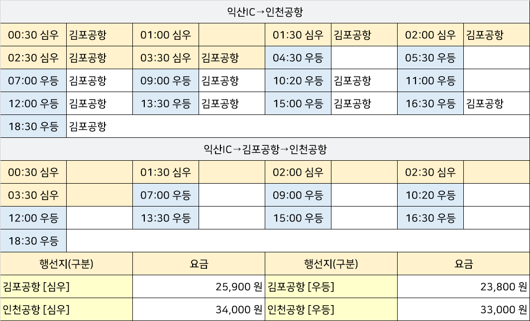 전주리무진 공항버스 정류장 시간표/요금표 2025년 04월 22일 기준