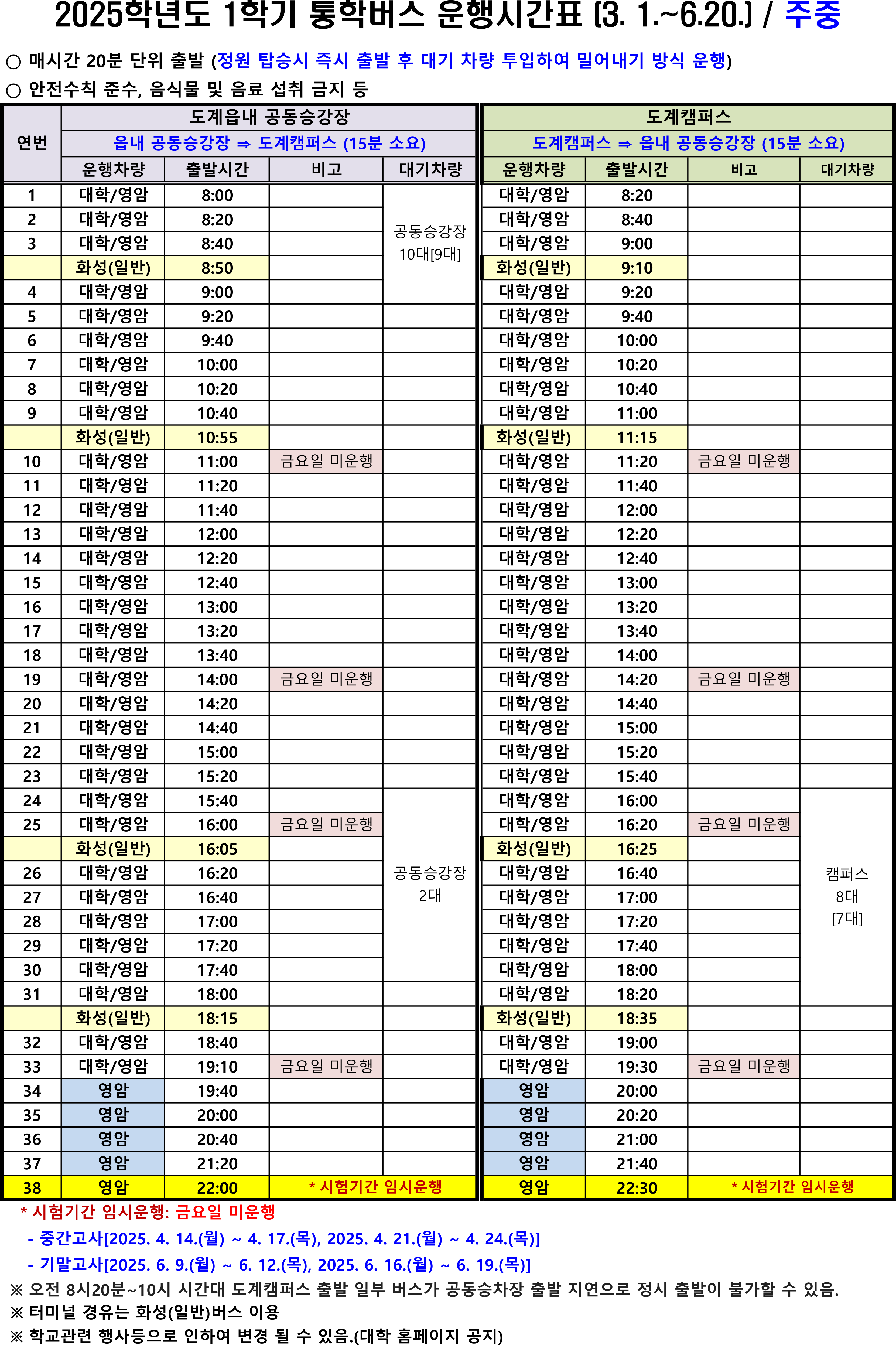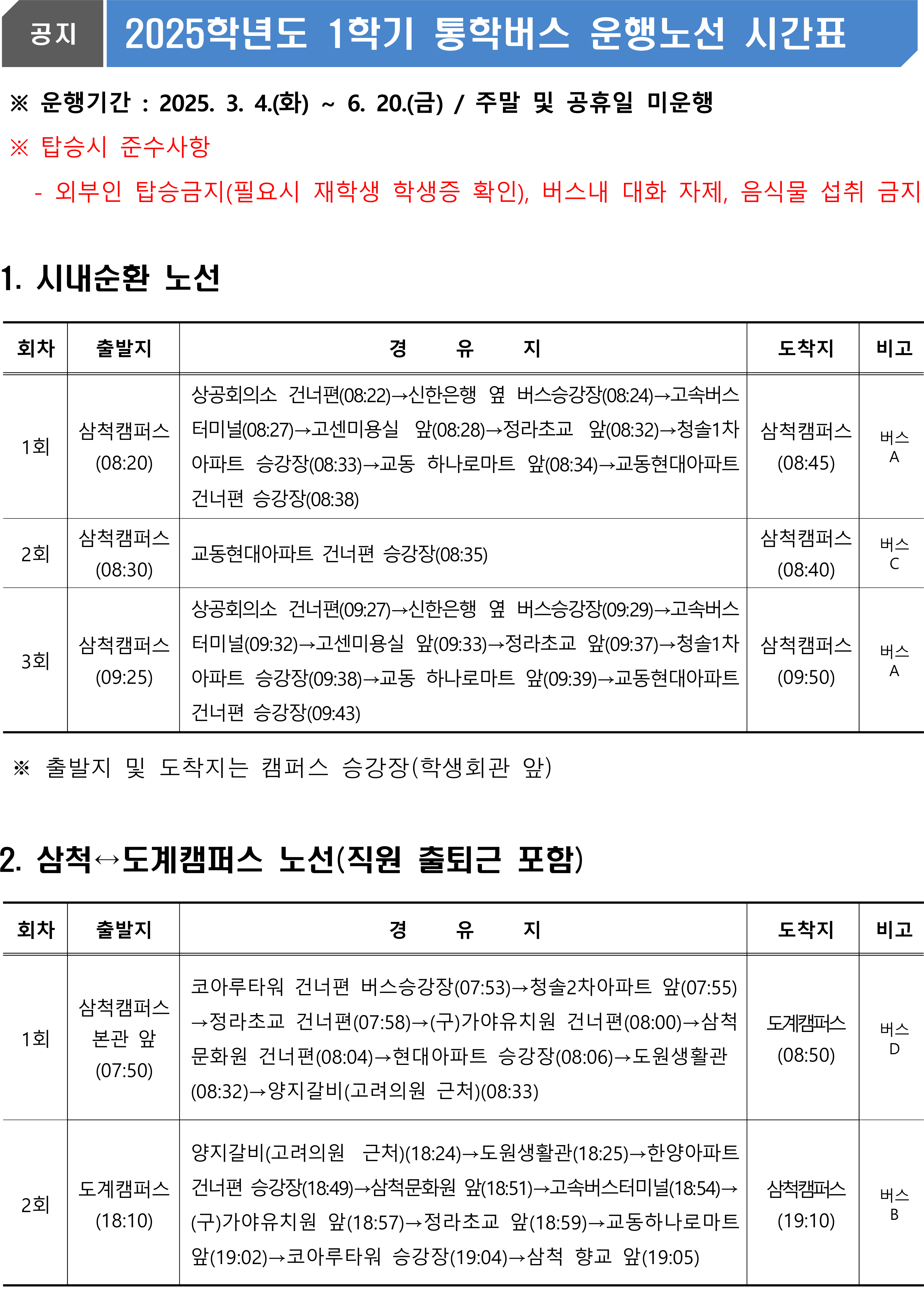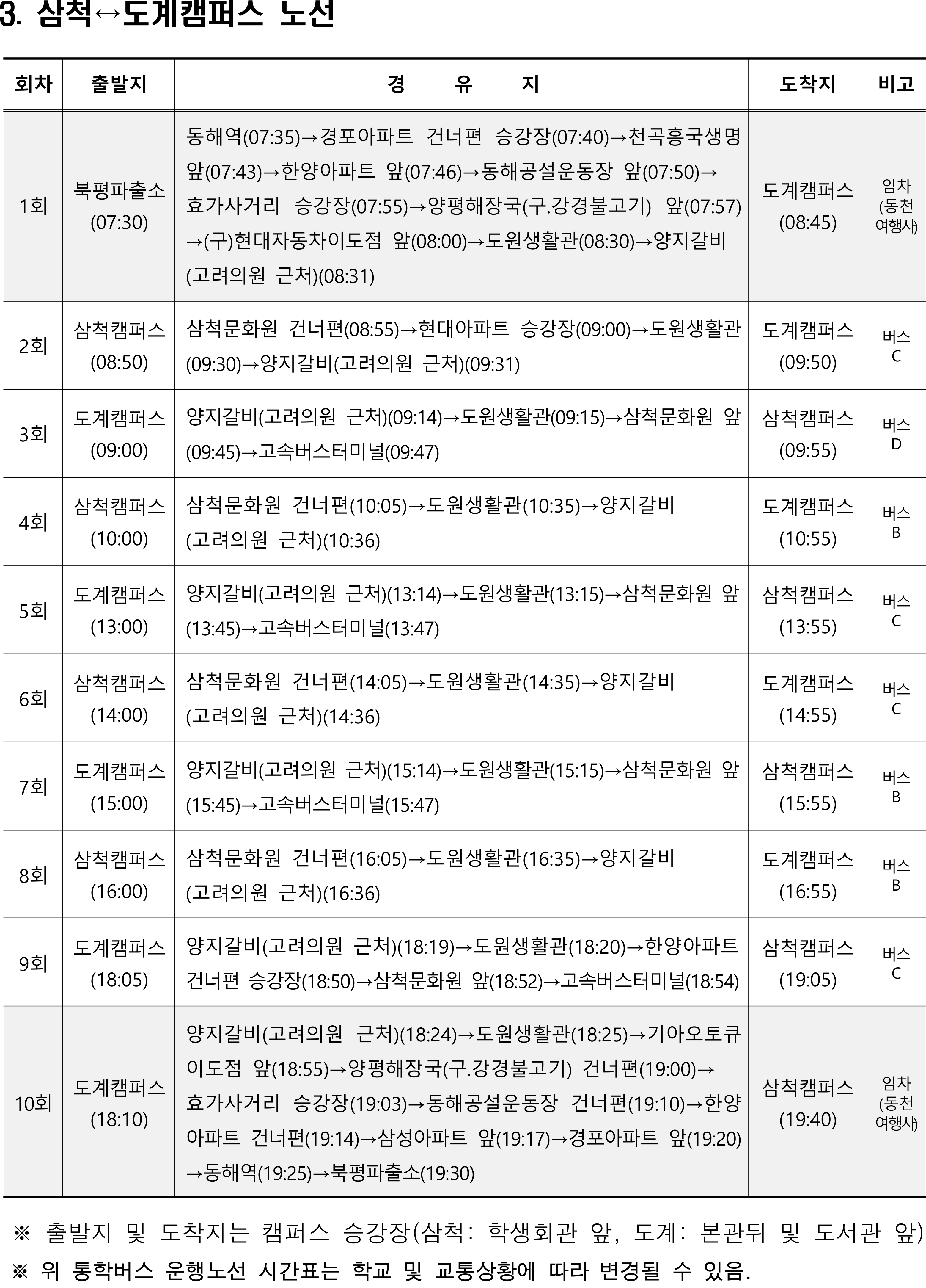 강원도 도계 캠퍼스 통학 버스 안내 정보: 아래 링크를 참고하세요.