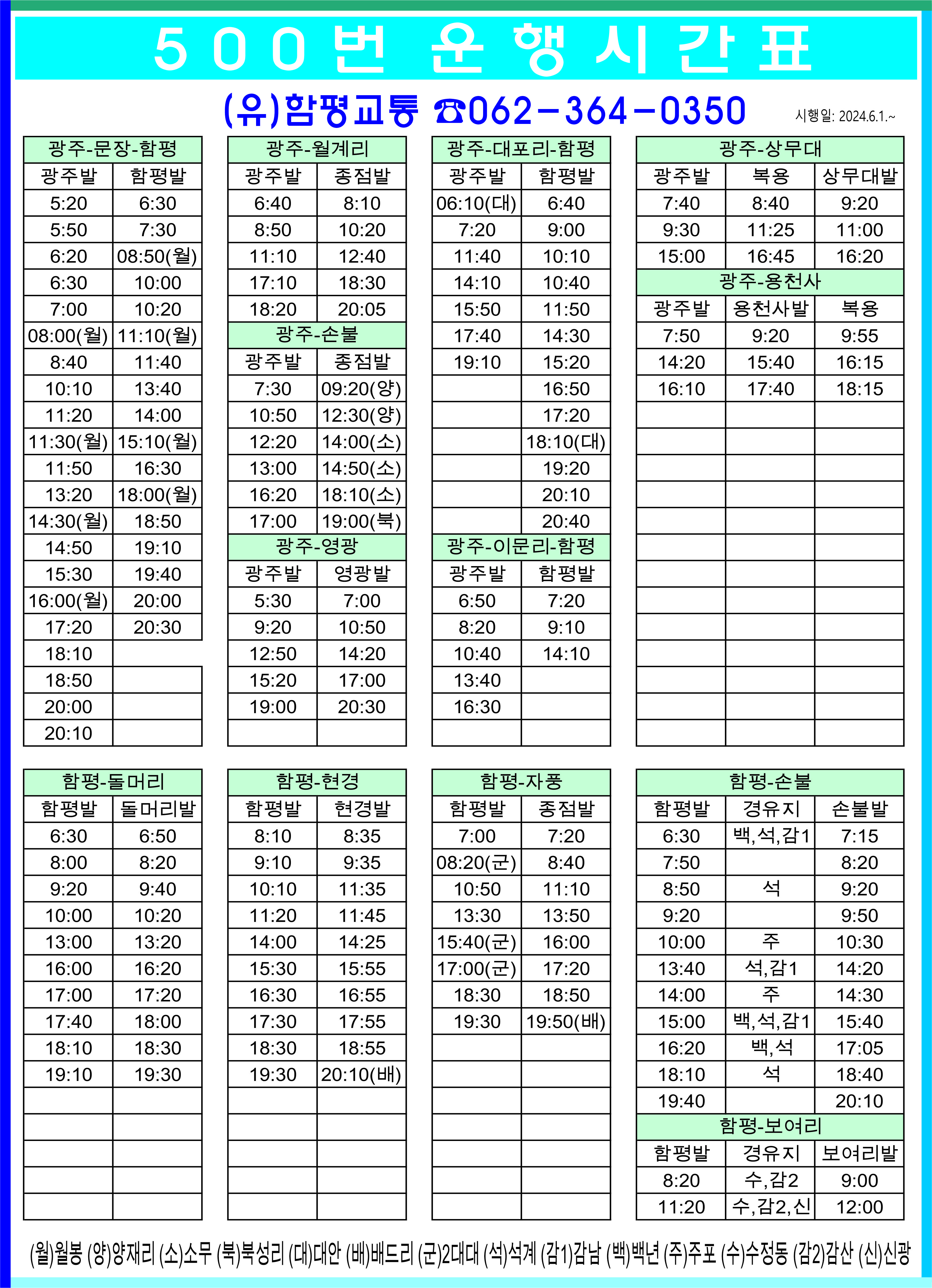 광주-문장-함평,광주-월계리,광주-대포리-함평,광주-상무대,광주-용천사,광주-손불,광주-영광,광주-이문리-함평,함평-돌머리,함평-현경,함평-자풍,함평-손불,함평-보여리