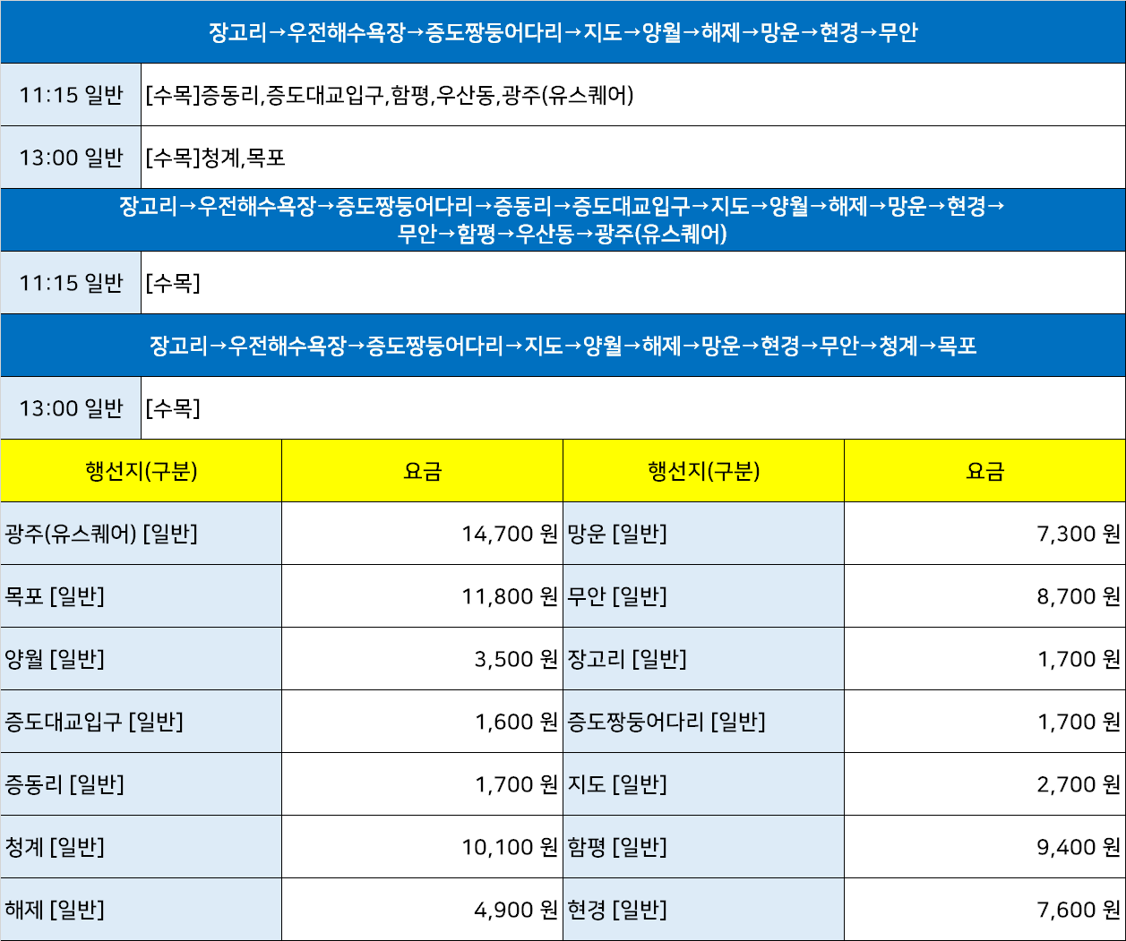 증도 우전리 시외버스 정류장 시간표/요금표 2025년 03월 19일 기준