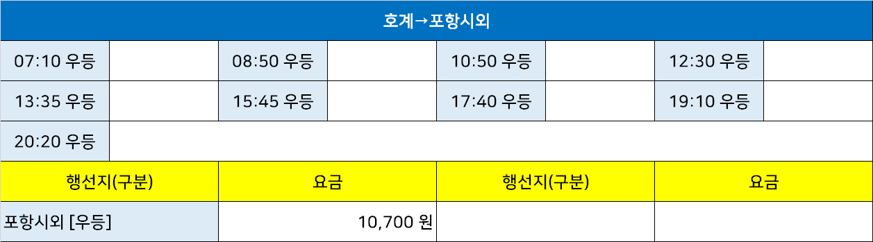 울산공항고속시외버스정류장 울산공항정류소 울산공항터미널 → "호계→포항시외".