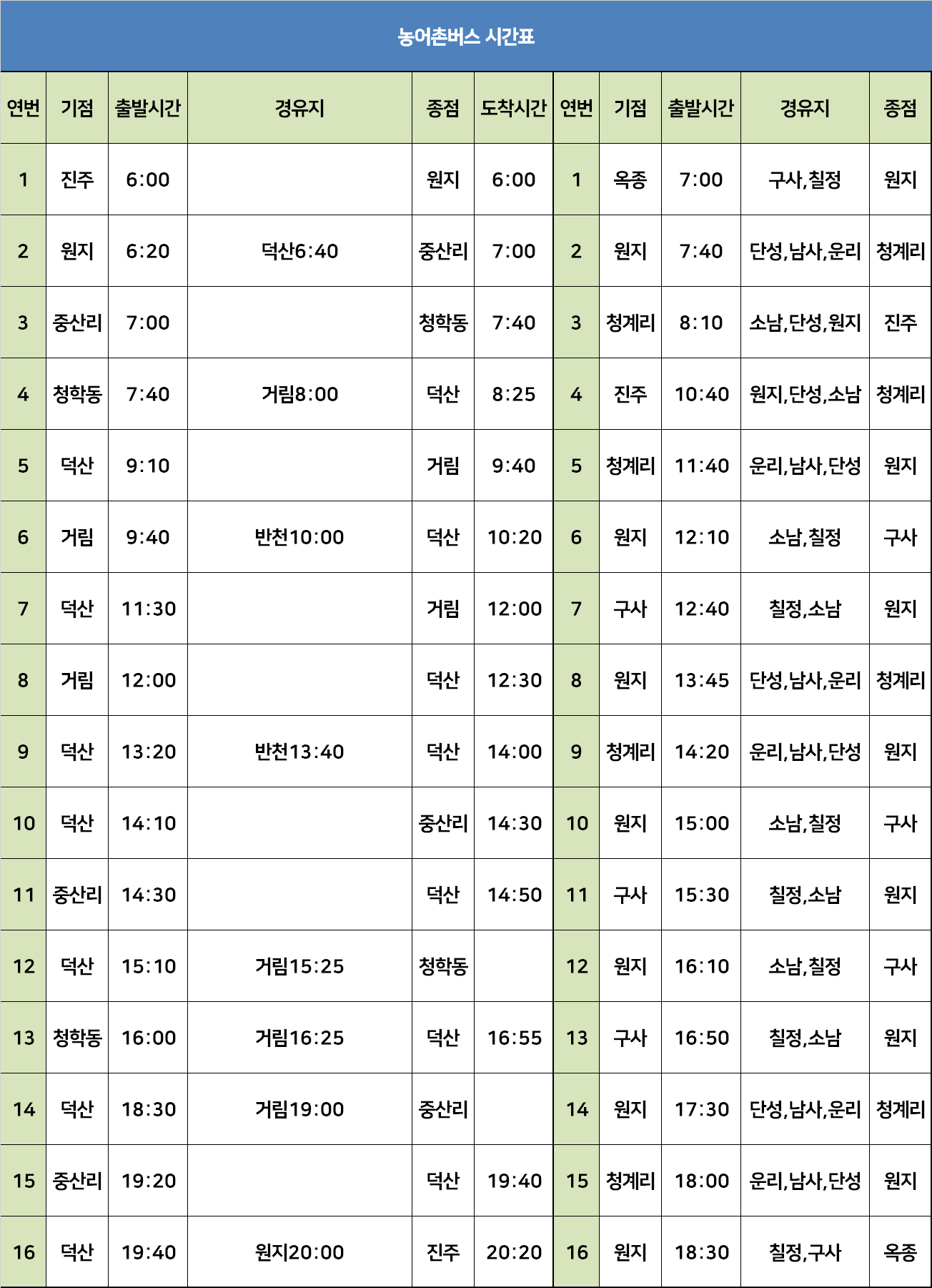 산청군 농어촌버스 시간표
