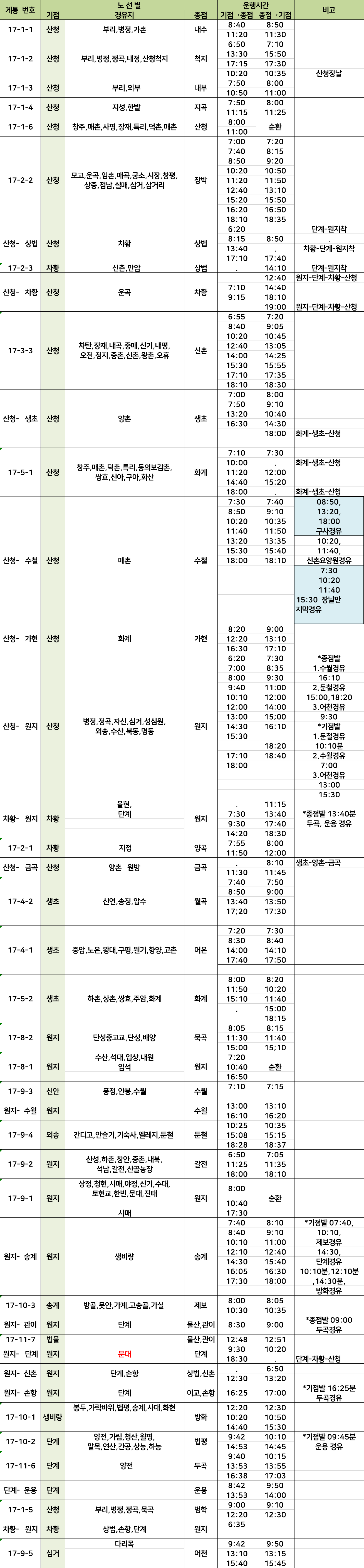 산청군 농어촌버스 시간표