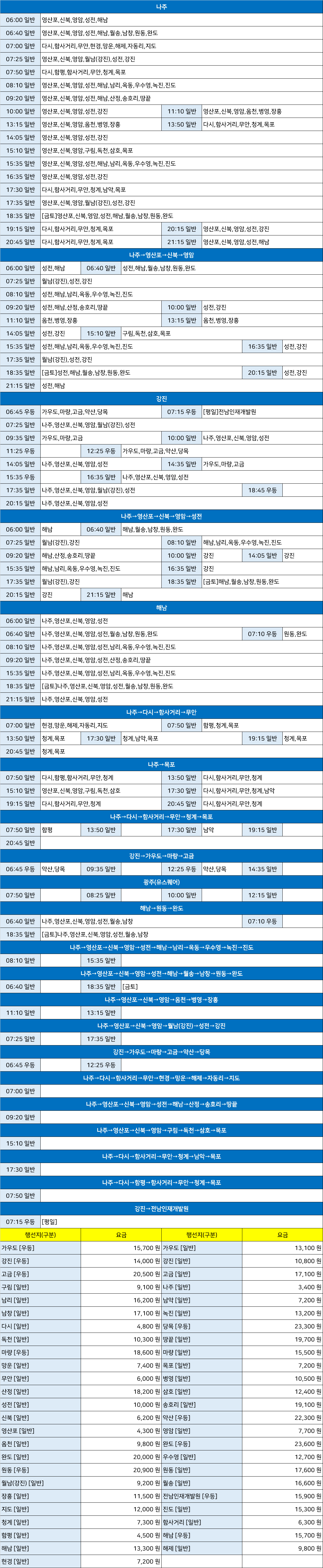 진월동 광주남부 시외버스 정류장 시간표/요금표 2025년 03월 29일 기준