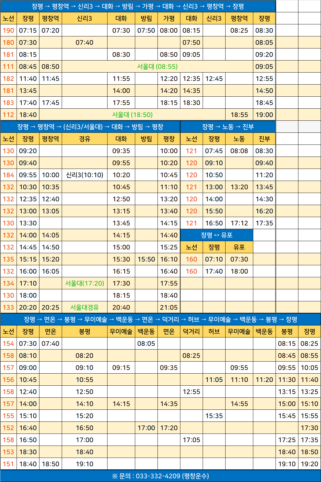 2025년 평창 농어촌버스 운행시간표