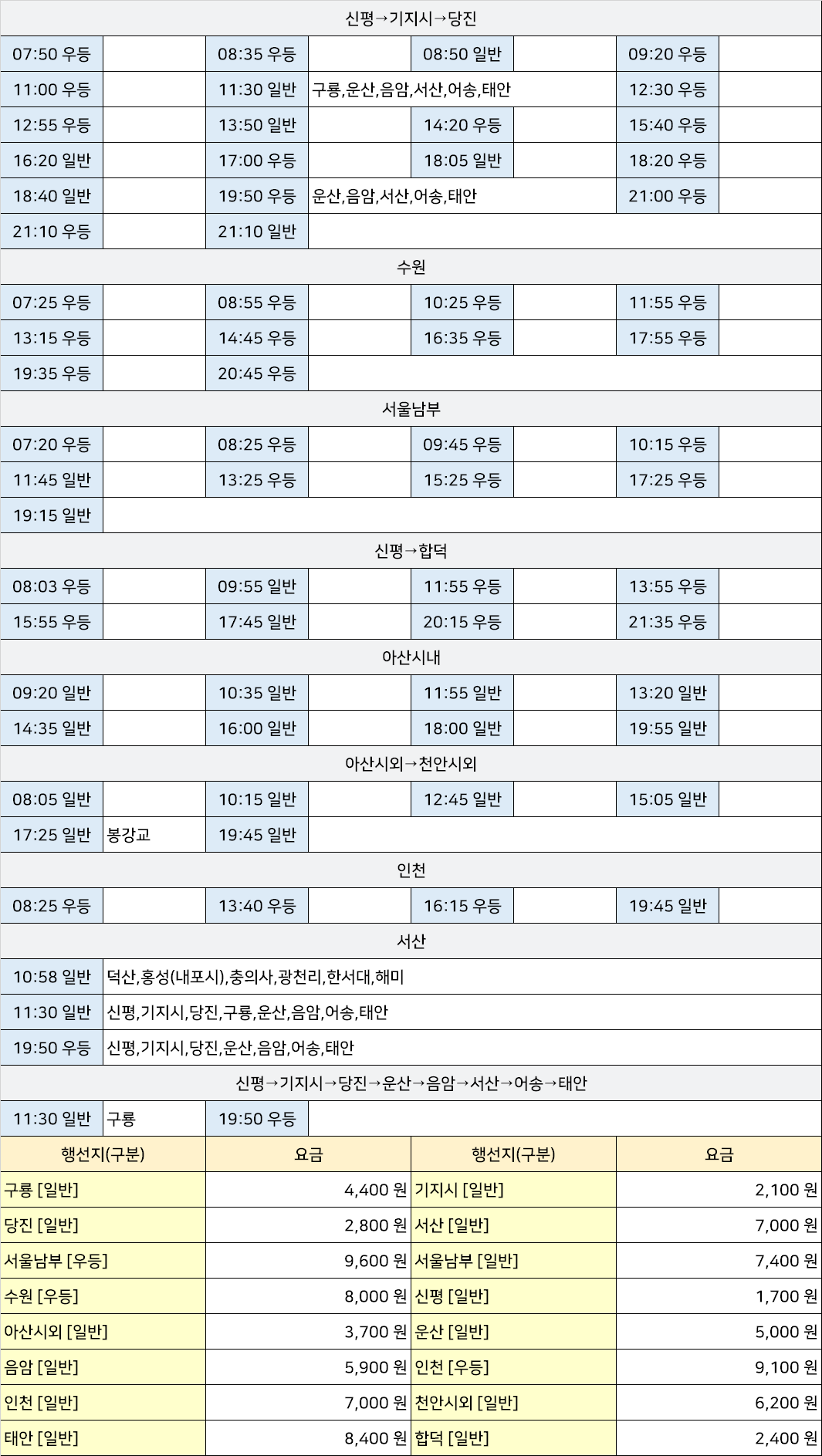 | 당진신평시외고속버스터미널 시간표 [신평정류장 신평정류소 신평면터미널 거산리터미널] (0) | 2025.04.08 |
