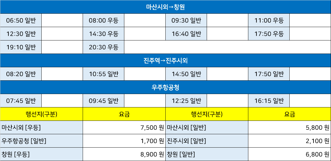 사천공항 시외버스 정류장 시간표/요금표 2025년 03월 31일 기준