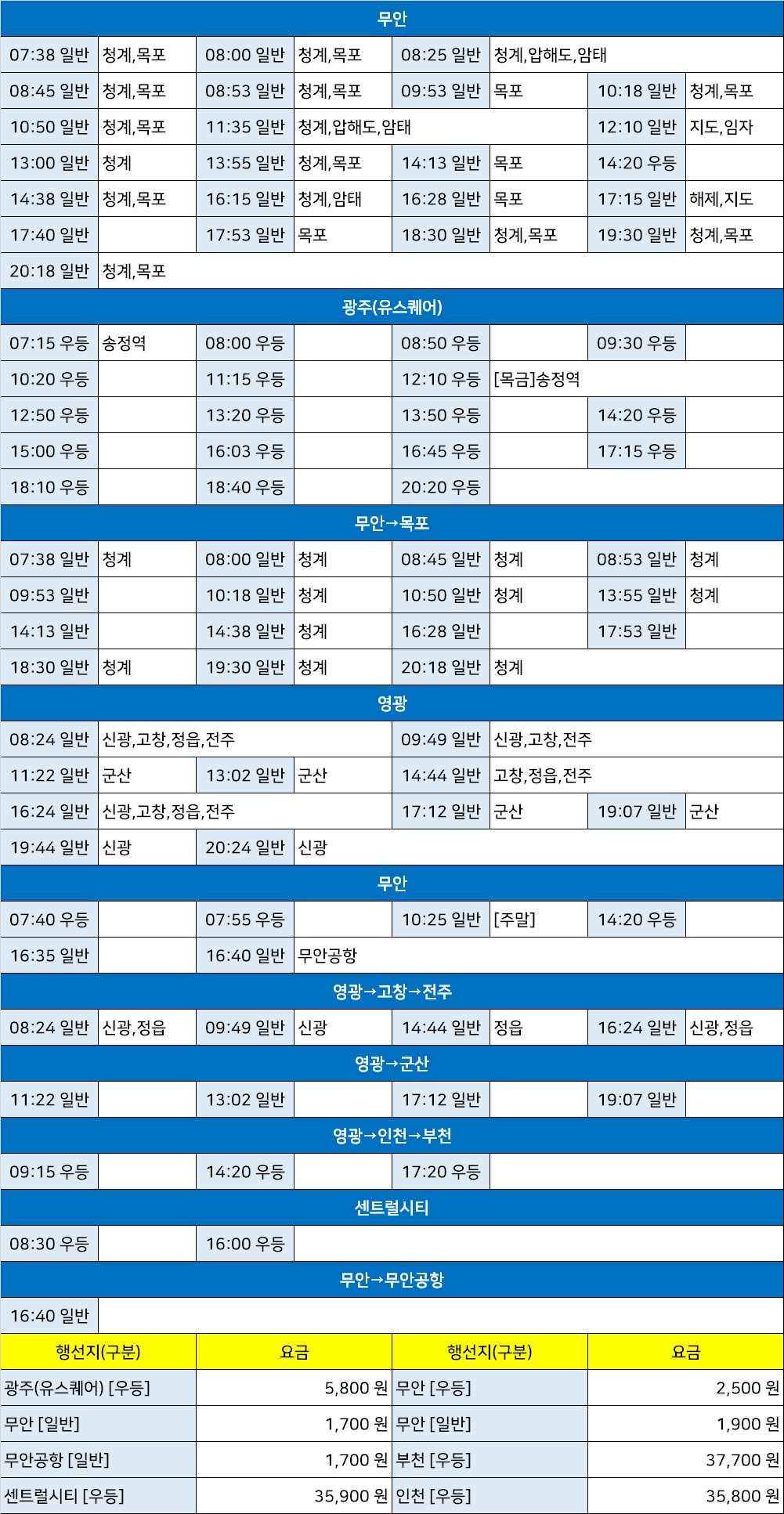함평 시외버스 터미널 시간표/요금표 2025년 03월 24일 기준
