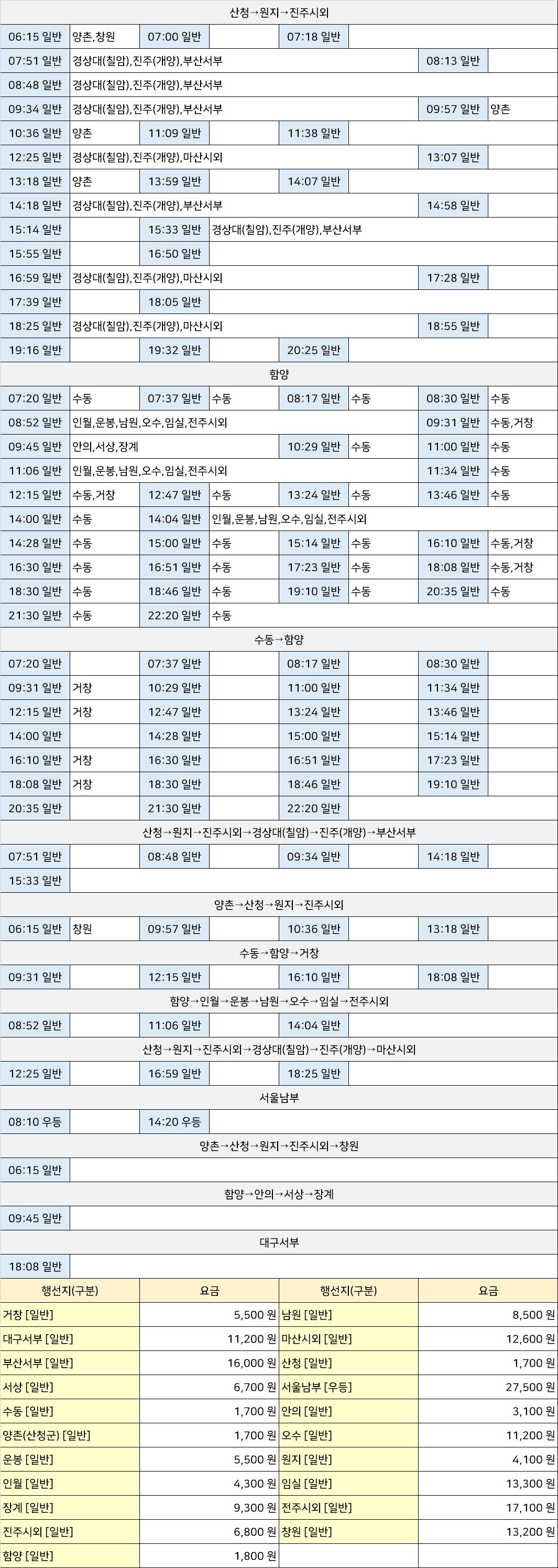 생초 시외버스 터미널 시간표/요금표 2025년 05월 16일 기준