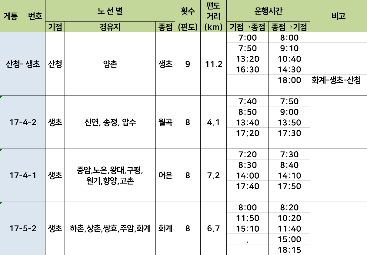 생초 농어촌 버스 시간표