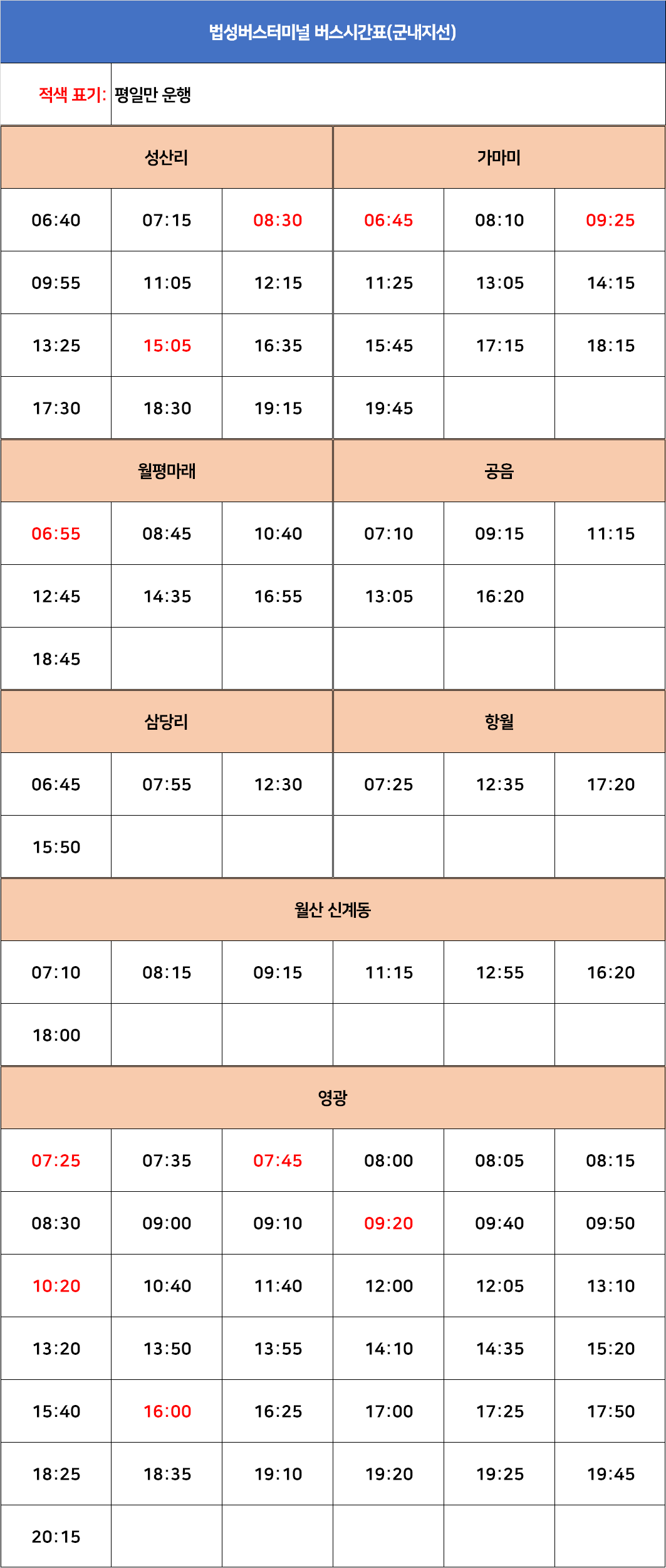 법성포 시외버스 정류장 시간표/요금표 2025년 05월 17일 기준