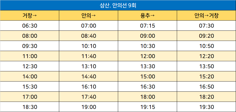 삼산.안의선 노선정보: 거창 → 안의 → 용추 → 안의 → 거창