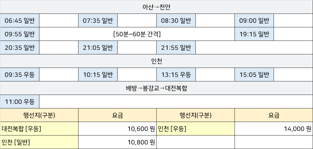 | 아산테크노벨리시외고속버스터미널 시간표 [아산테크노벨리정류장 아산테크노벨리정류소 둔포면터미널 석곡리터미널] (0) | 2025.05.14 |