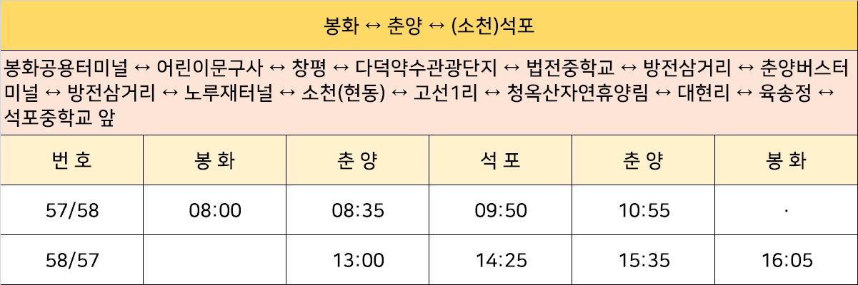 봉화 ↔ 춘양 ↔ (소천)석포 버스: