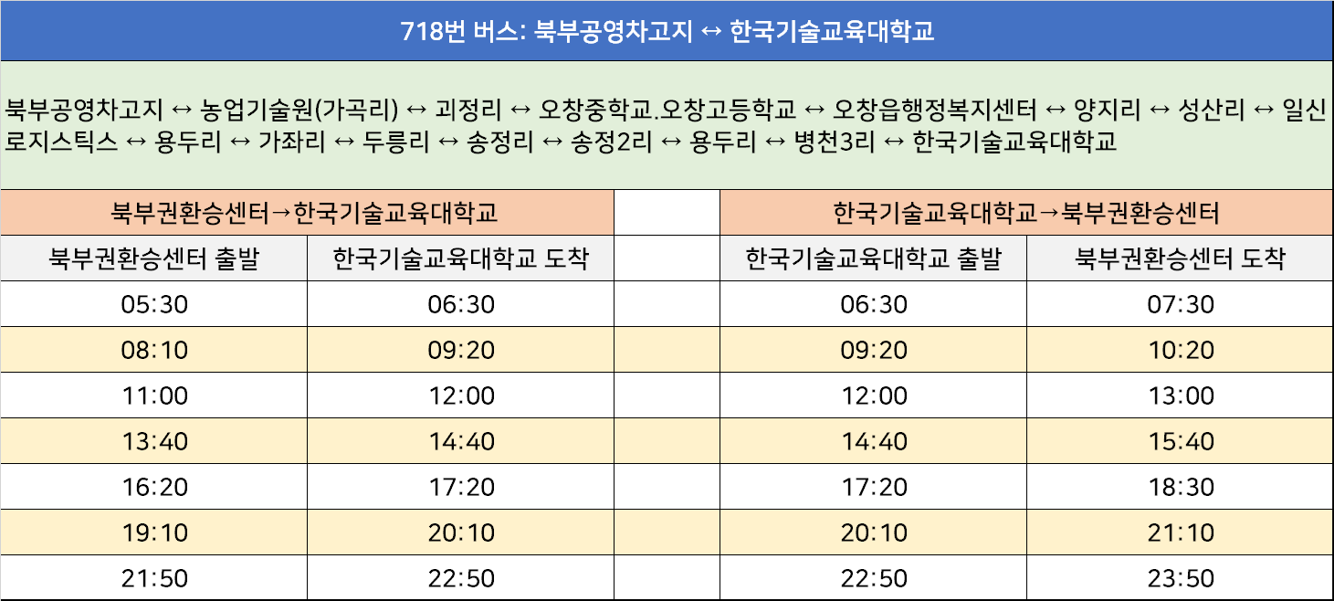 청주 718번 버스: 북부공영차고지↔한국기술교육대학교