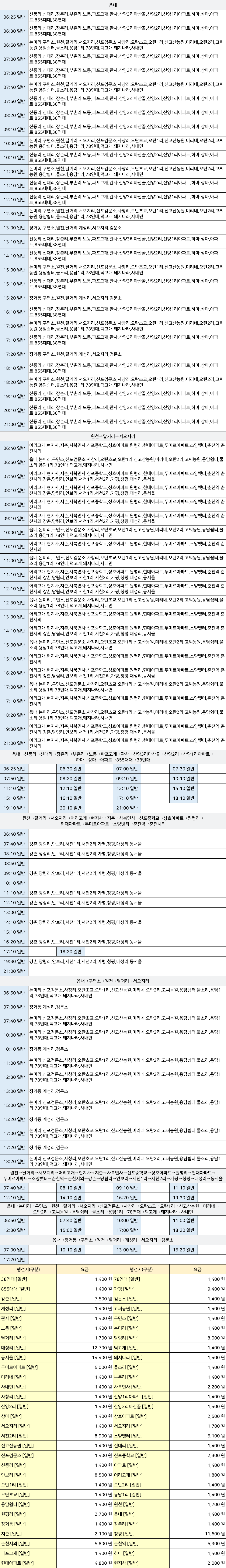 화천 시외버스 터미널 시간표/요금표 2025년 05월 25일 기준