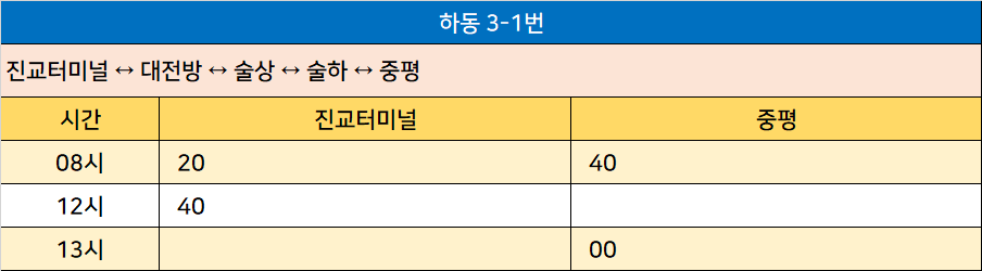 하동 3-1번: 진교터미널 ↔ 대전방 ↔ 술상 ↔ 술하 ↔ 중평