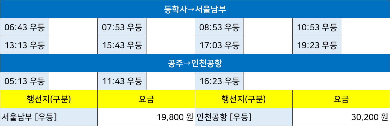 신도안정류소 신도안버스정류소 신도안정류장 신도안버스정류장 신도안시외버스정류장 → "동학사→서울남부, 공주→인천공항".