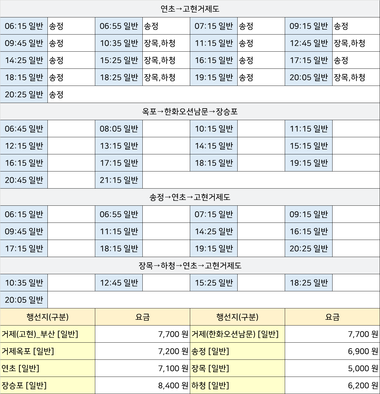 부산신평시외고속버스터미널 부산신평버스정류장 부산신평버스정류소 → "송정→연초→고현거제도,옥포→한화오션남문→장승포,장목→하청→연초→고현거제도".