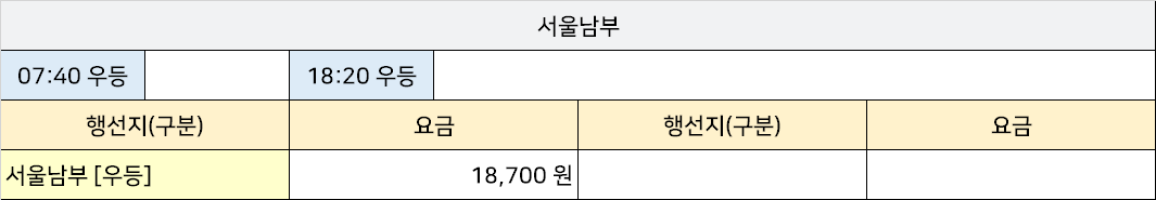 부여한국전통문화대학교시외고속버스터미널 부여한국전통문화대학교정류장 부여한국전통문화대학교정류소 → "서울남부".