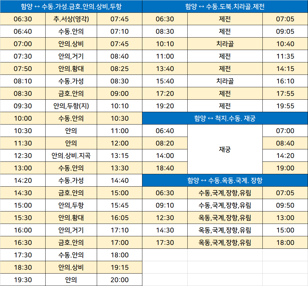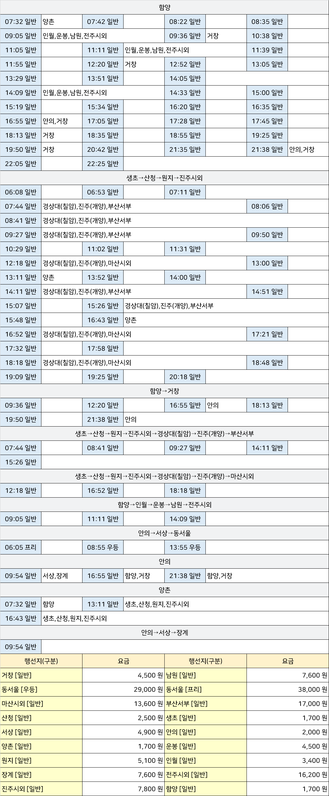 | 안의시외고속버스터미널 시간표 [안의정류소 안의정류장 안의면터미널 금천리터미널] (0) | 2025.04.19 |
