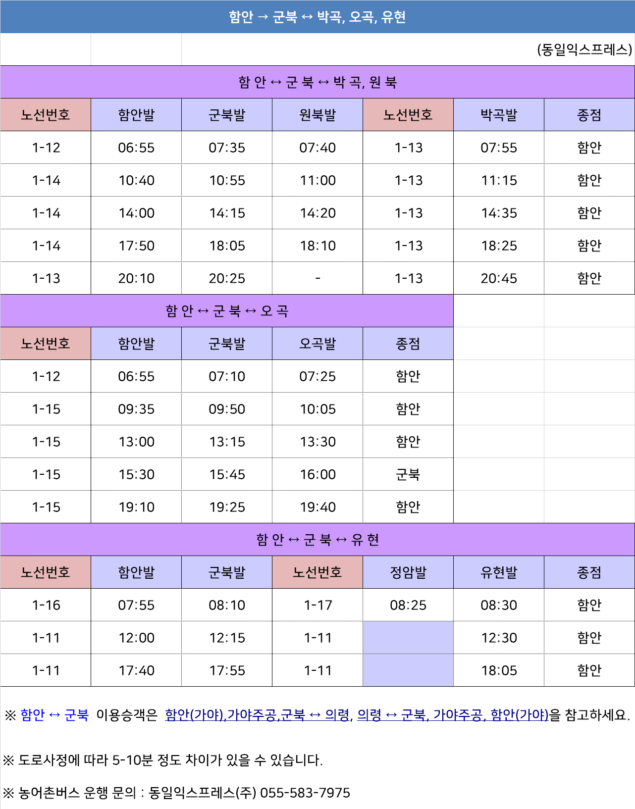 함안 → 군북 ↔ 박곡, 오곡, 유현