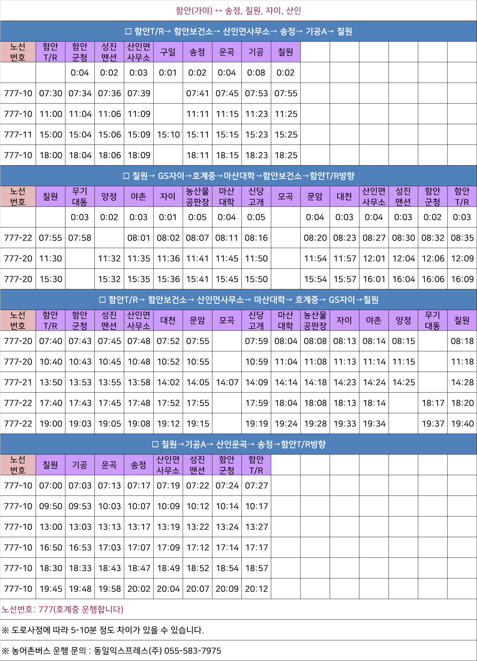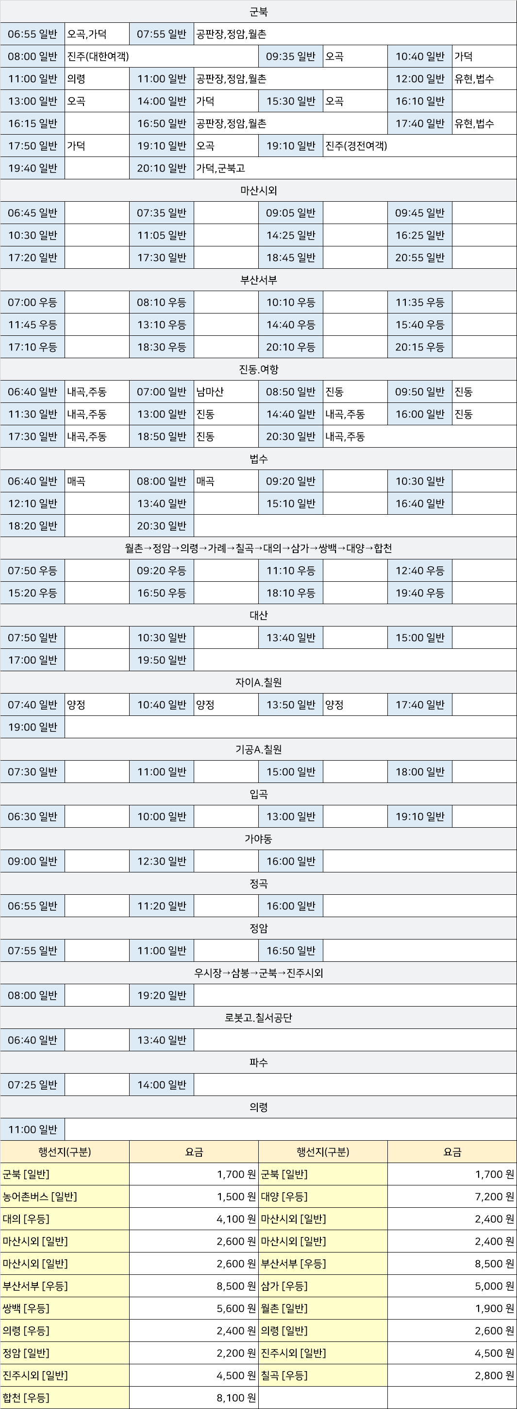 함안 시외고속버스 터미널 시간표/요금표 2025년 07월 29일 기준