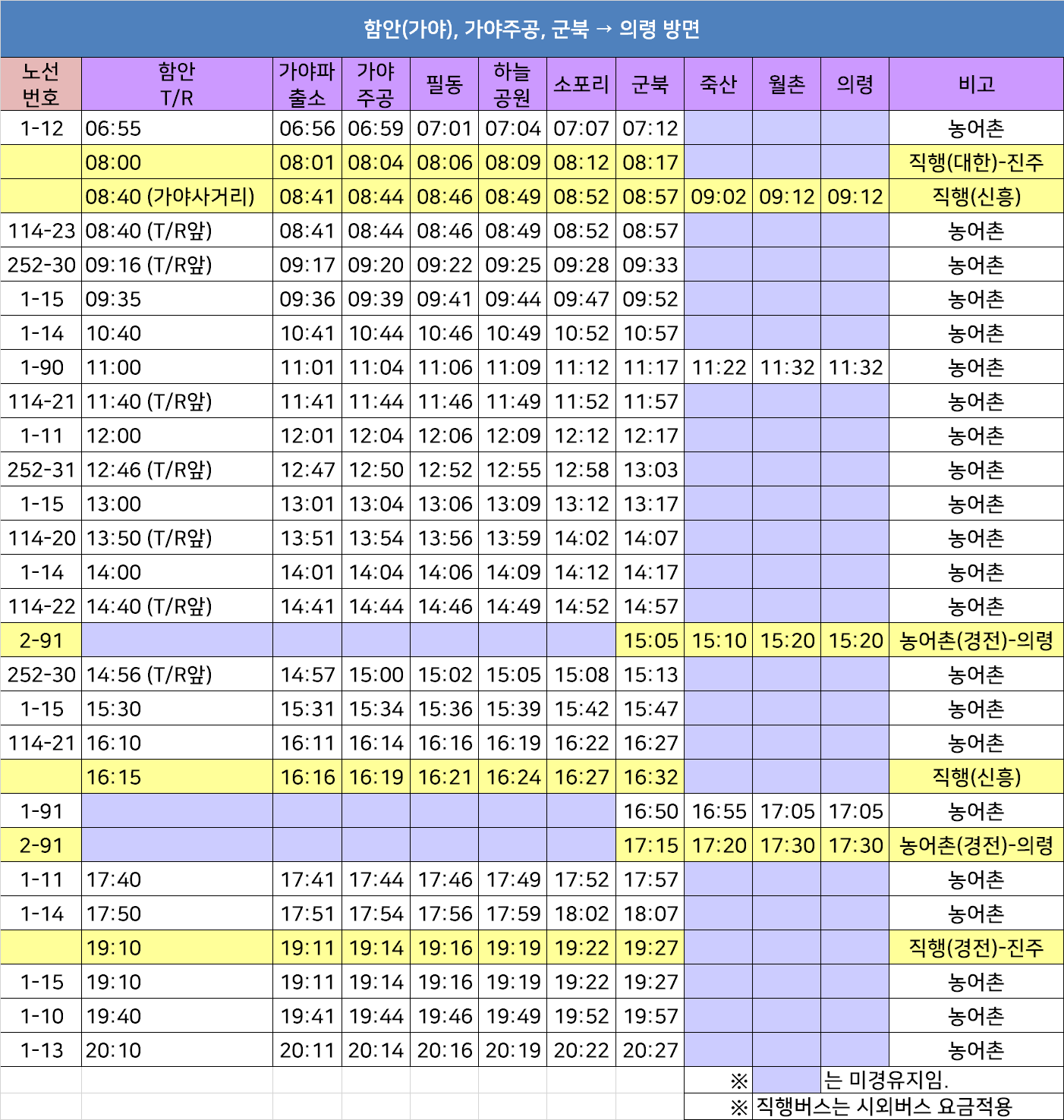 함안T/R,가야파출소,가야주공,필동,하늘공원,소포리,군북,죽산,월촌,의령
