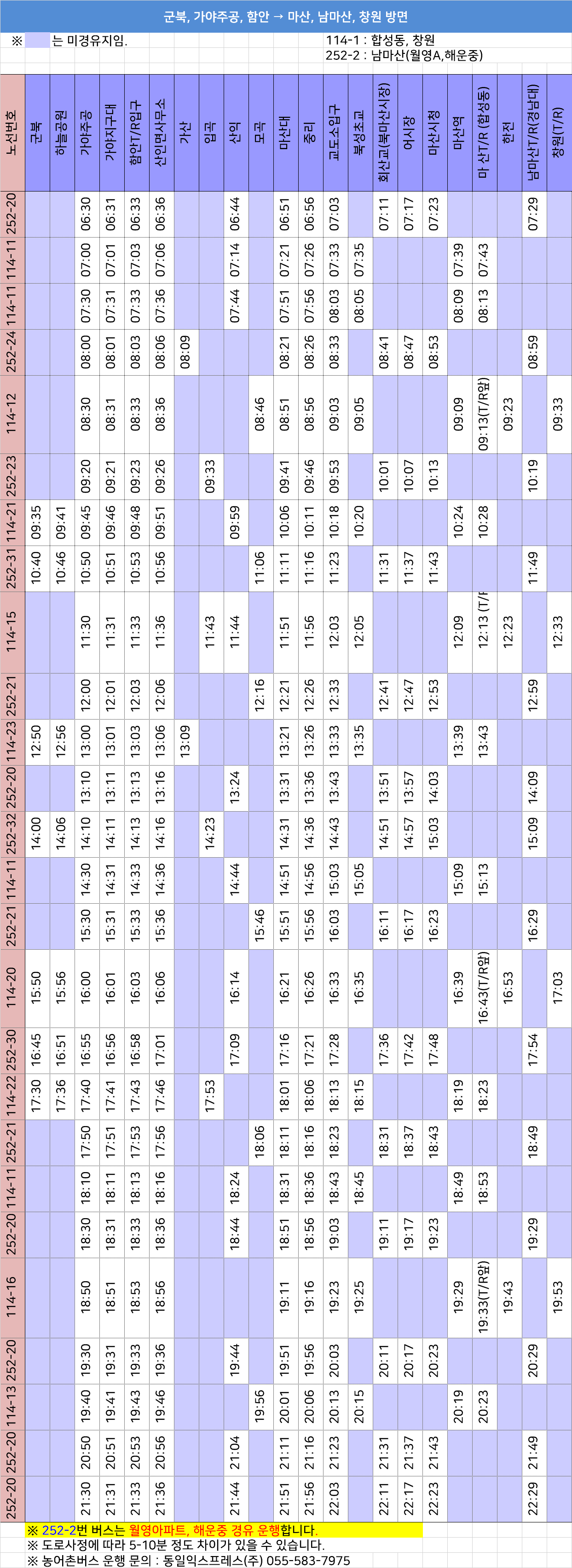 군북, 가야주공, 함안 → 마산, 남마산, 창원 방면