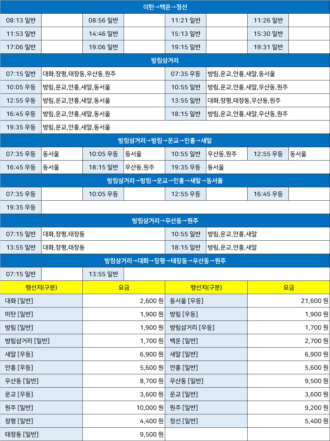 | 미탄합동시외고속버스터미널 시간표 [미탄창리정류소 미탄창리정류장] (0) | 2025.03.27 |