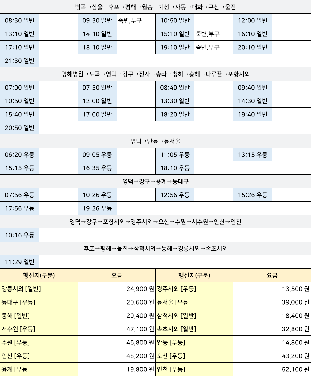 영해 시외버스 터미널 시간표/요금표 2025년 05월 09일 기준