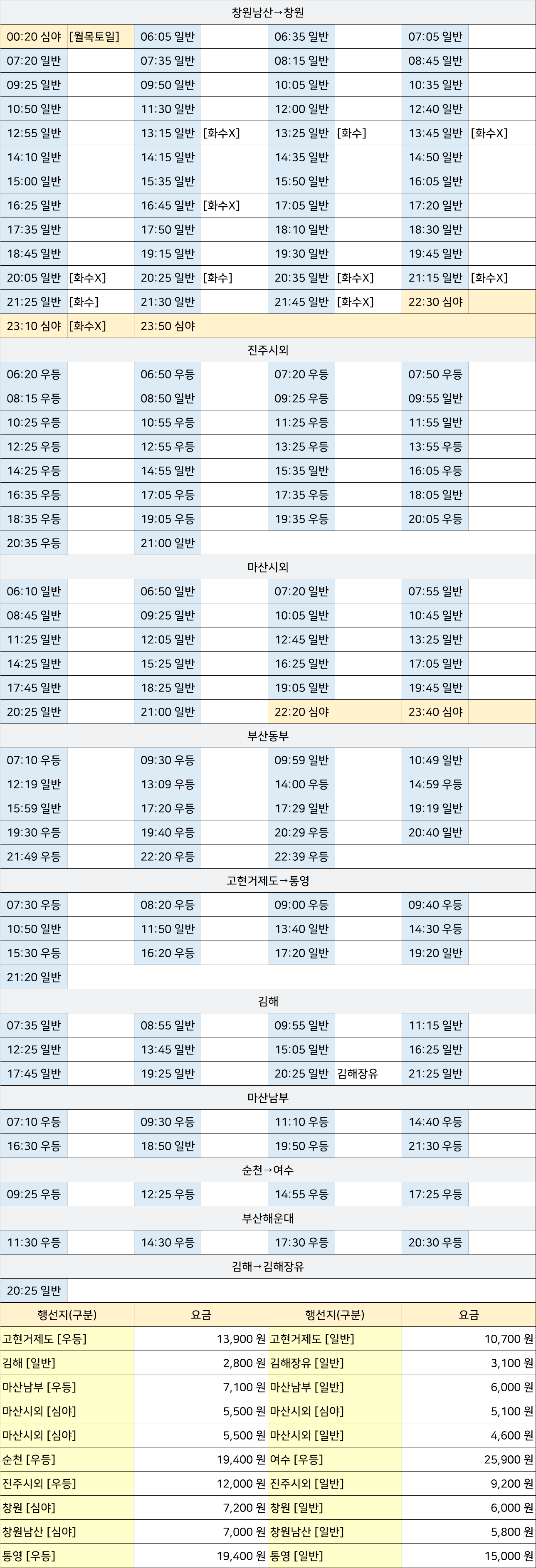 부산동래시외고속버스터미널 부산동래버스정류장 부산동래버스정류소 → "고현거제도→통영,김해→김해장유,마산남부,마산시외,부산동부,부산해운대,순천→여수,진주시외,창원남산→창원".