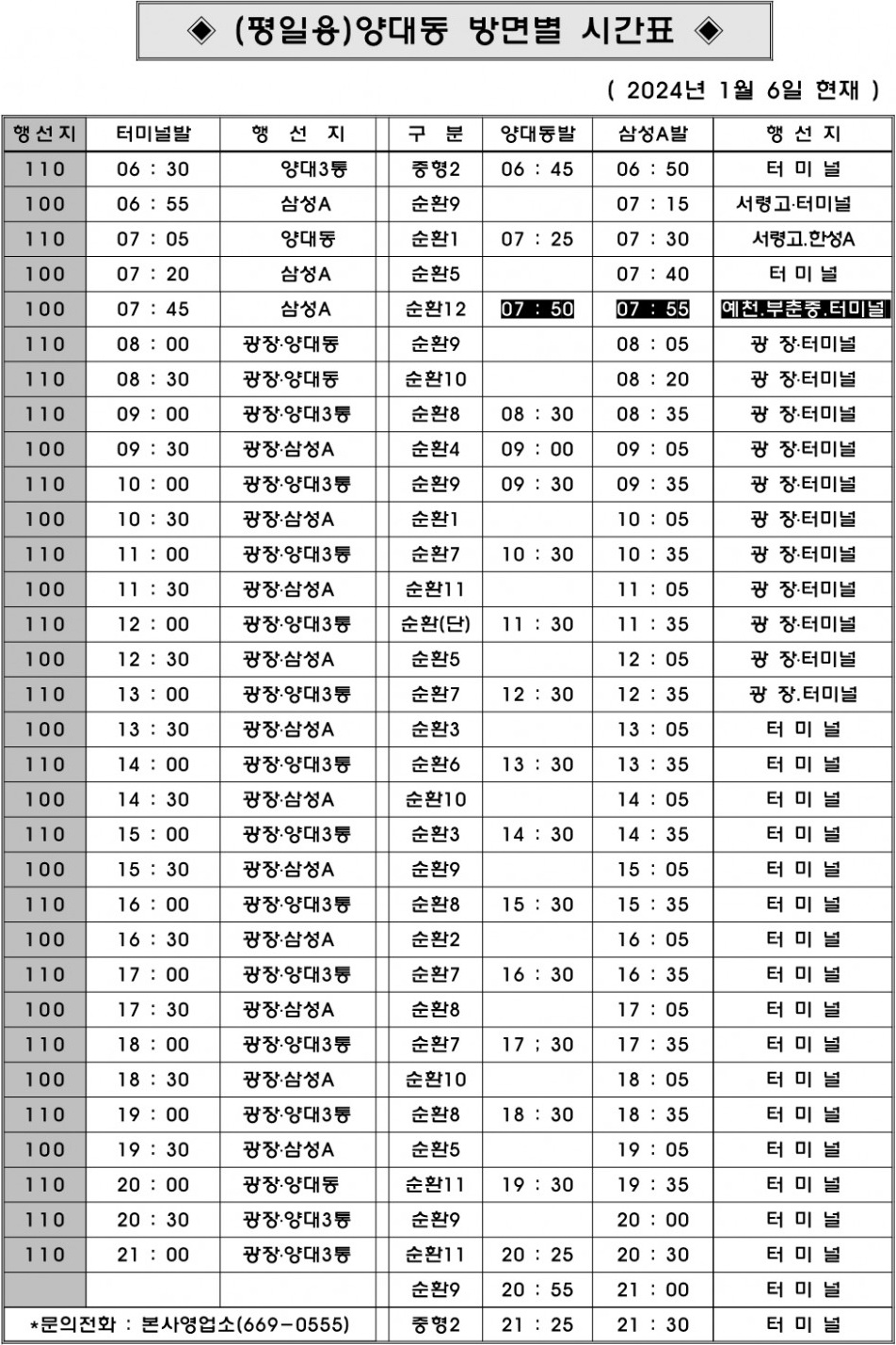 - 성남: 07:10~19:10, 하루 6편. 요금 16,000원