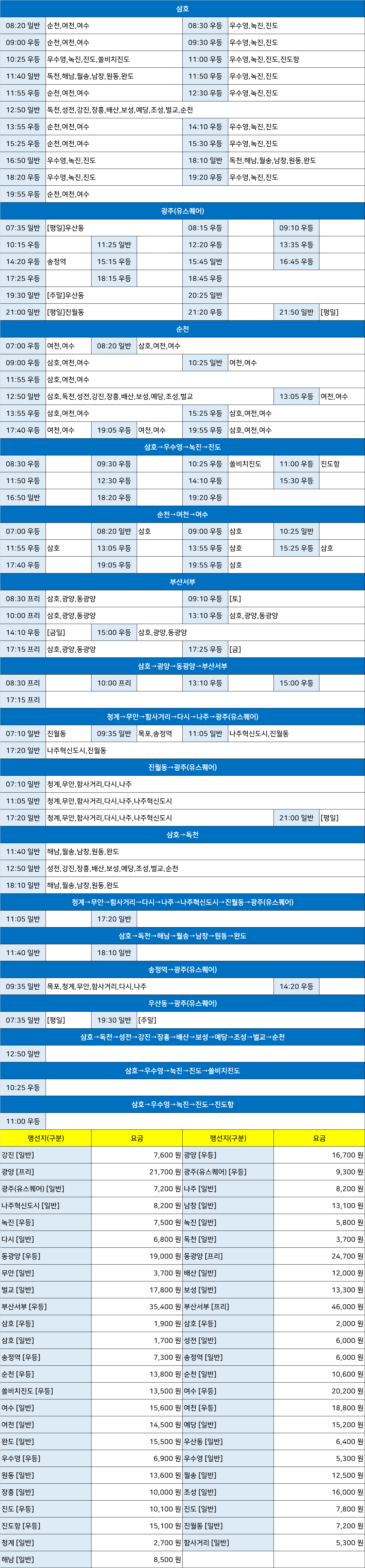 남악도청 시외버스 정류장 시간표/요금표 2025년 03월 20일 기준