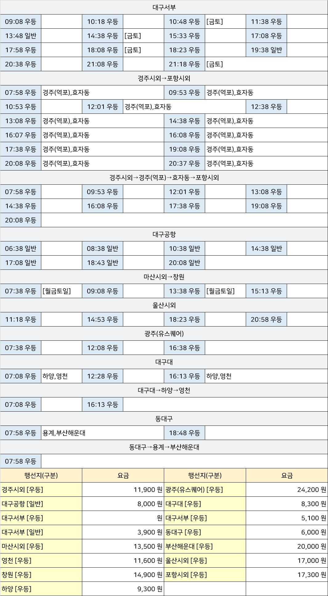 구미복지 시외버스 정류장 시간표/요금표 2025년 07월 21일 기준