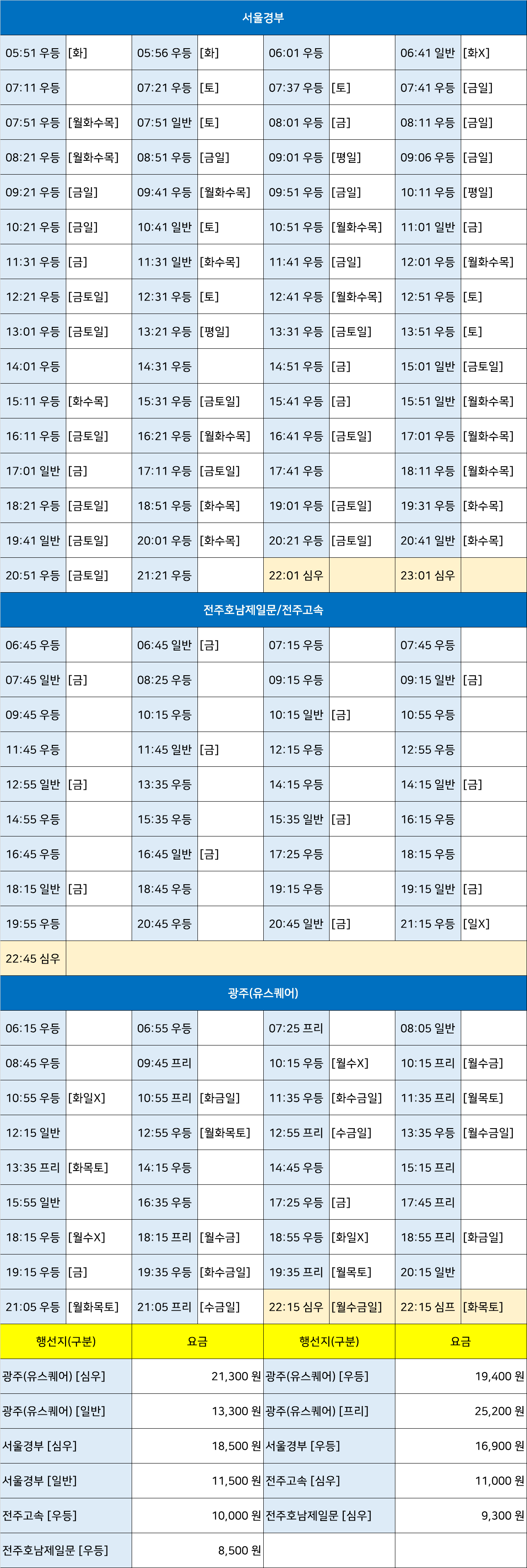 대전청사 샘머리고속버스정류장 둔산정류장 → "광주(유스퀘어),서울경부,전주고속,전주호남제일문".