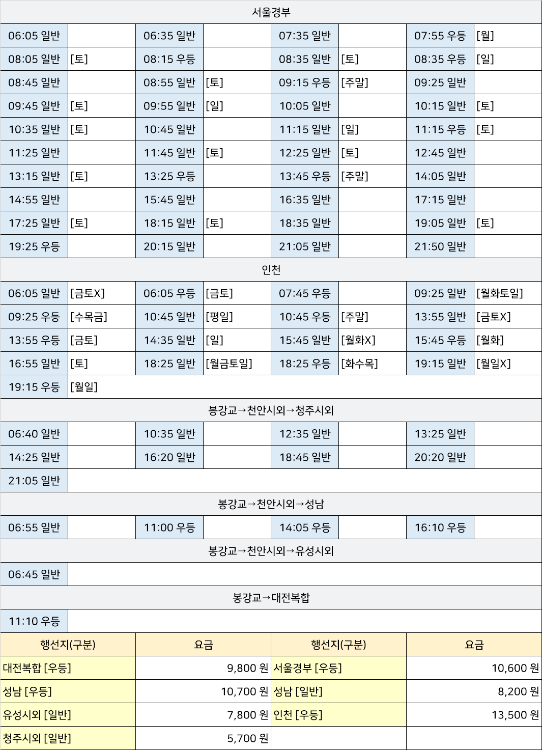 | 봉강교시외고속버스터미널 시간표 [봉강교정류장 봉강교정류소 아산서부휴게소터미널 호서웨딩프라자터미널 배방읍터미널 세교리터미널] (0) | 2025.05.14 |