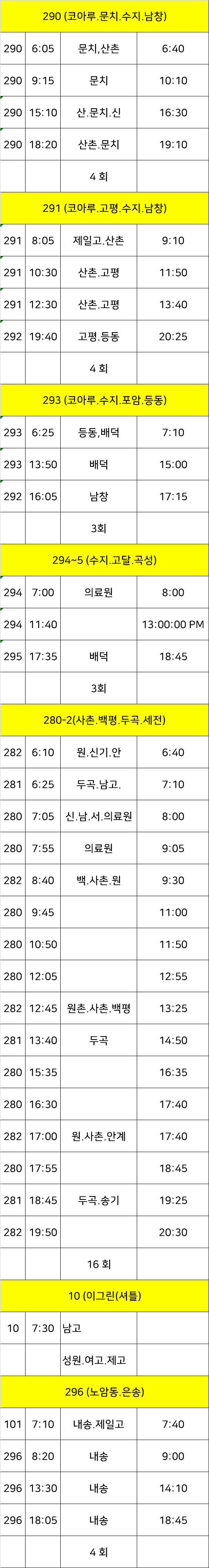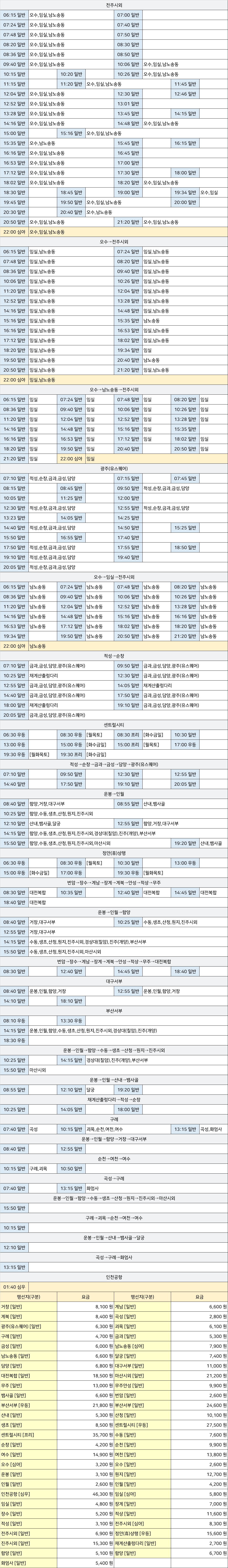 남원 시외버스 터미널 시간표/요금표 2025년 08월 05일 기준