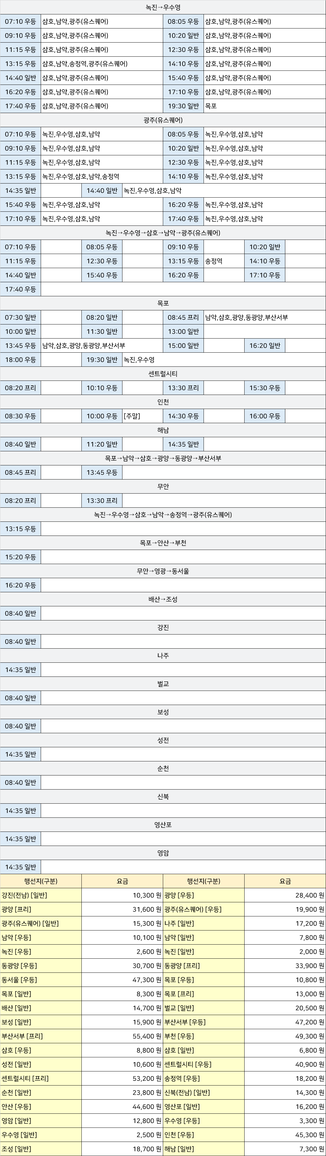 진도 시외버스 터미널 시간표/요금표 2025년 06월 02일 기준