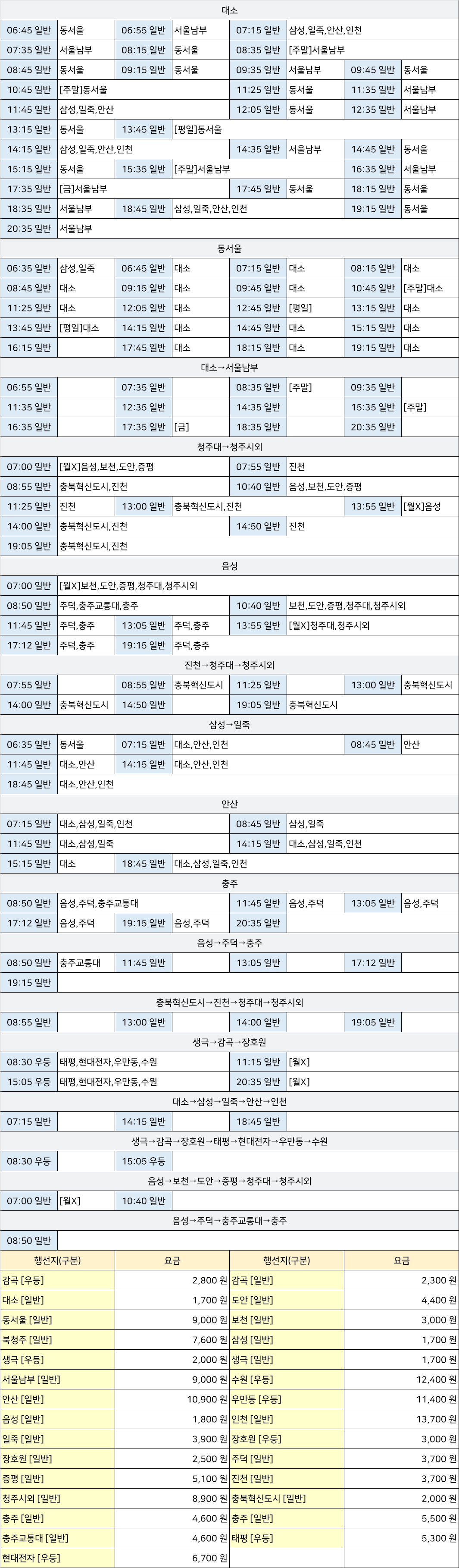금왕무극임시 시외버스 터미널 시간표/요금표 2025년 06월 03일 기준