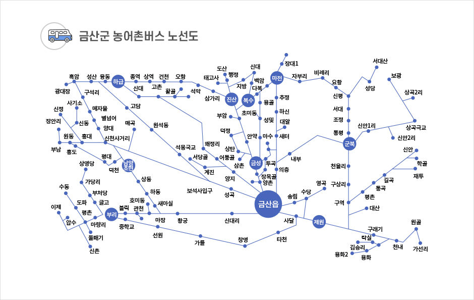 금산 시외버스 터미널에서 출발하는 농어촌 버스 시간표 - 금산군청 자료