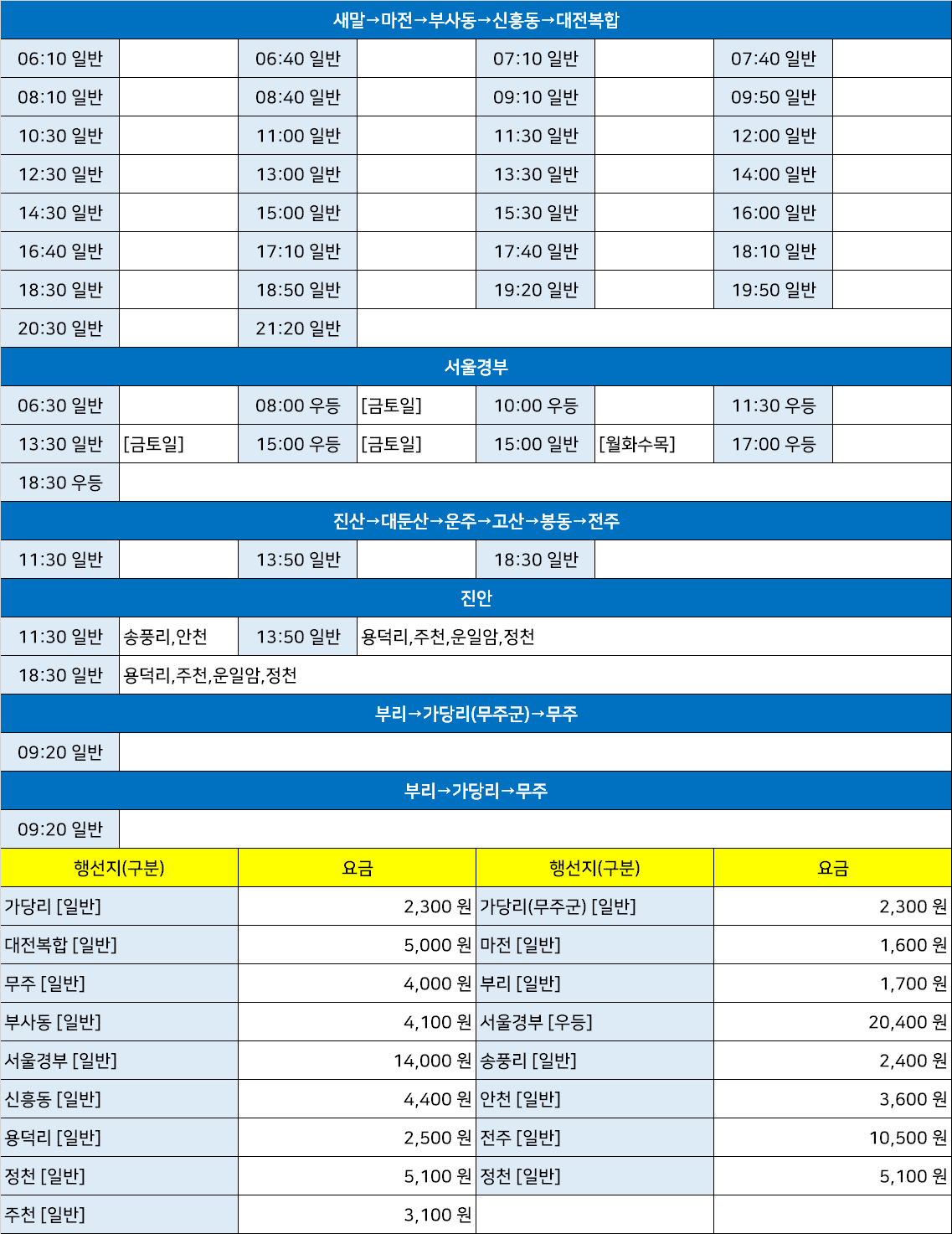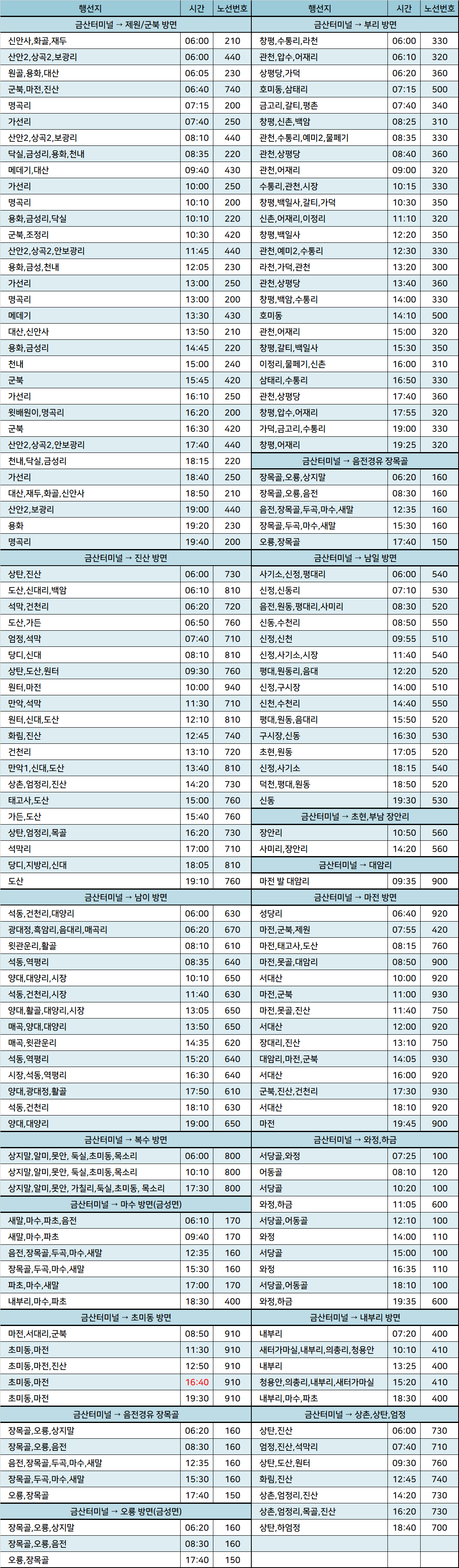 금산 시외버스 터미널 시간표/요금표 2025년 03월 31일 기준