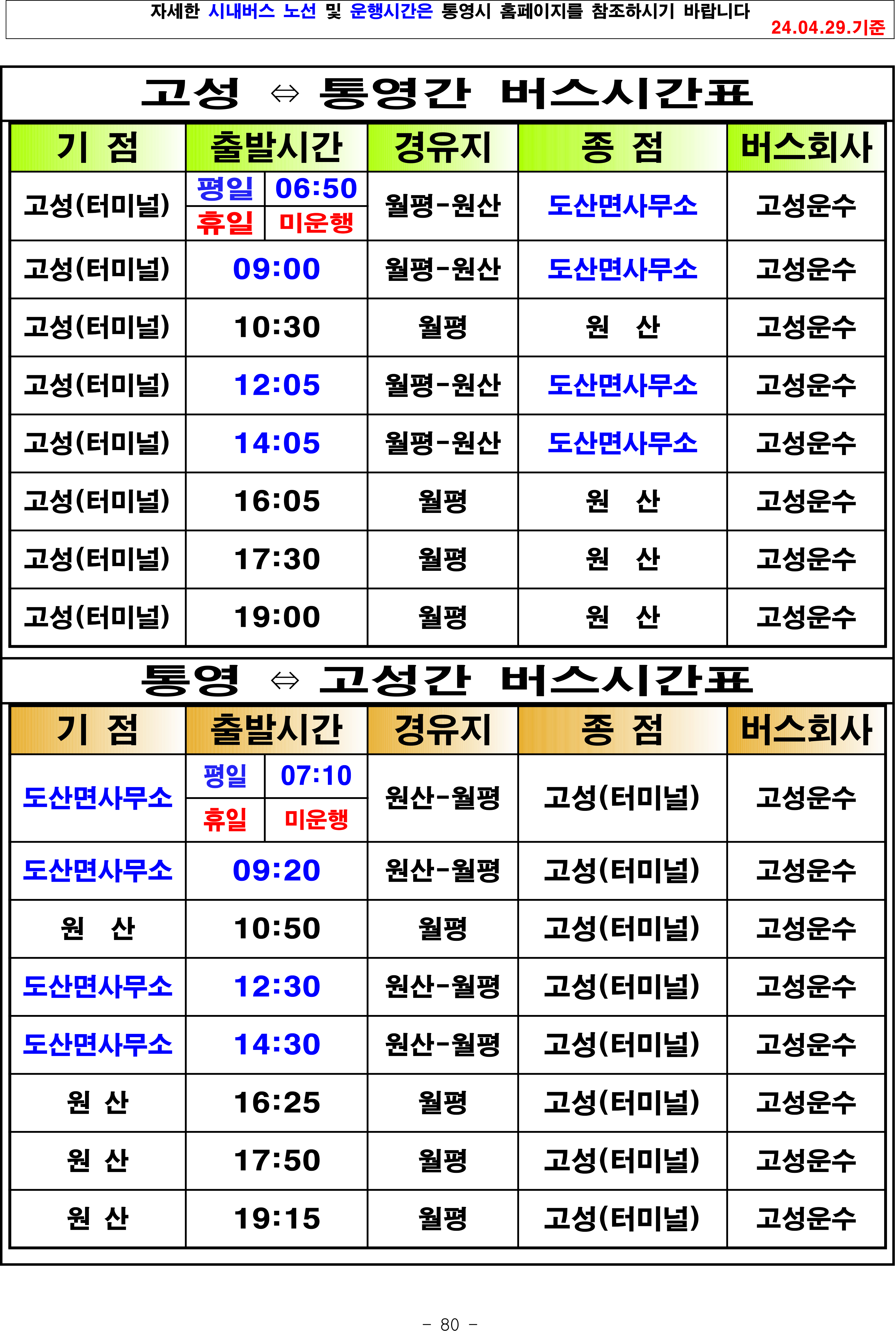 통영 ↔ 고성간 시내버스 시간표