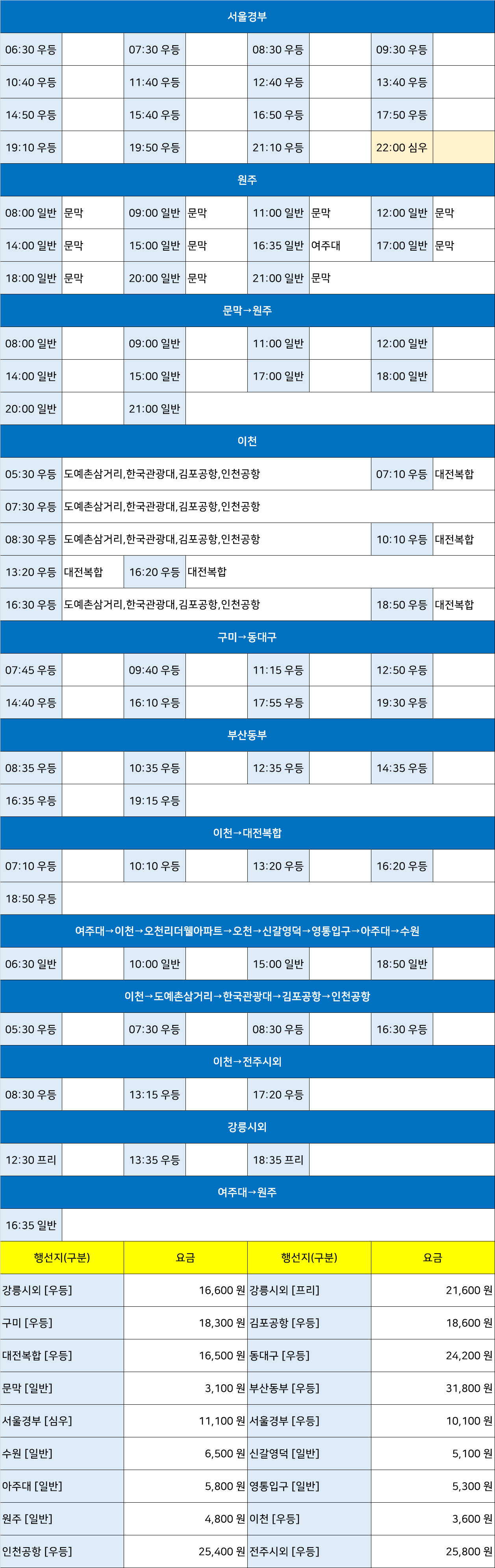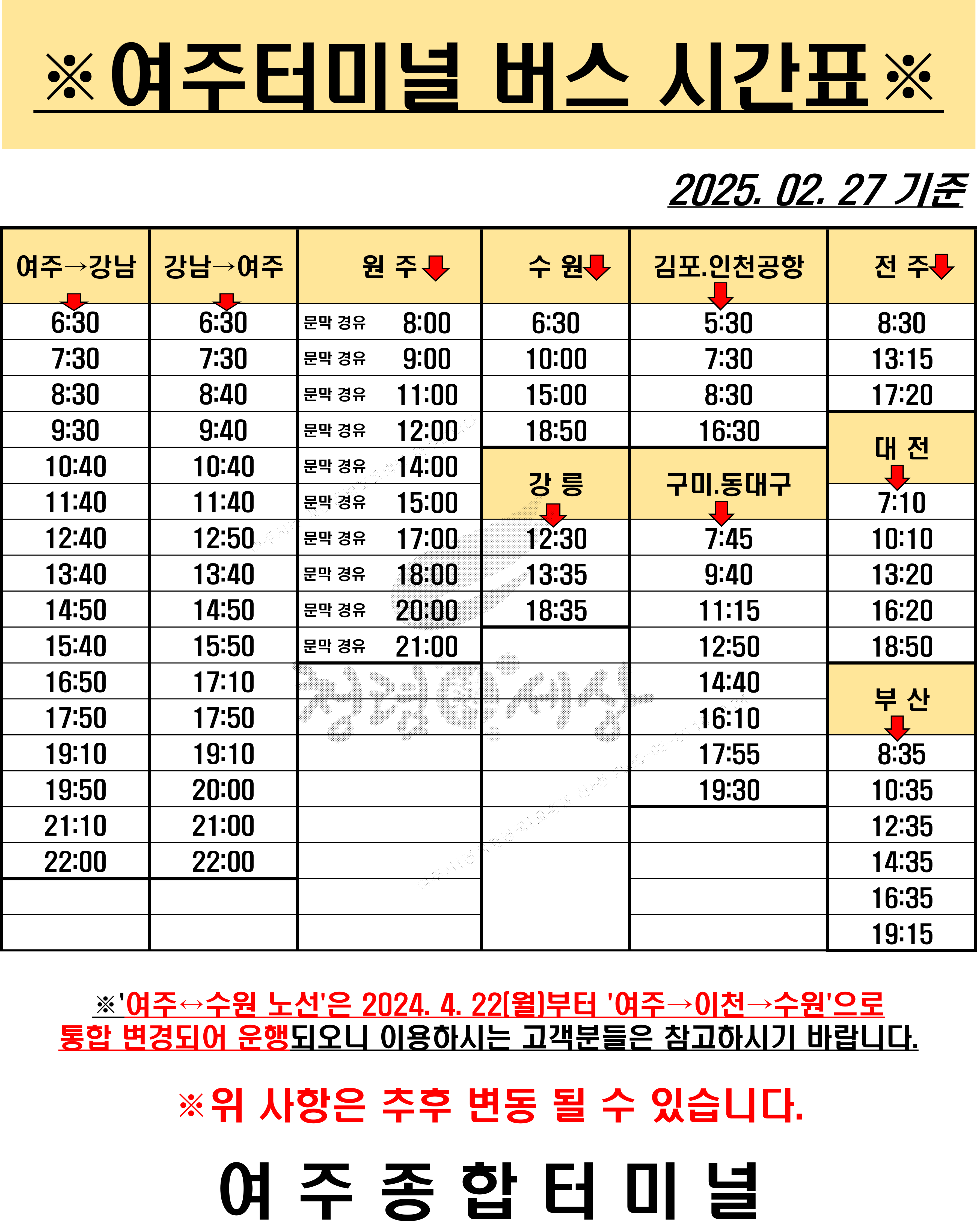 여주 시외버스 터미널 시간표/요금표 2025년 03월 01일 기준