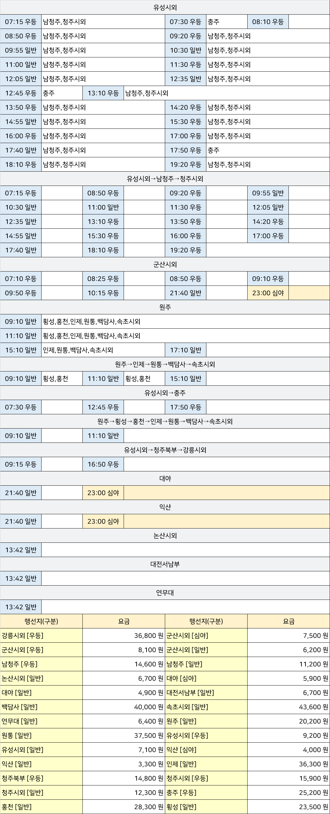 덕진 시외버스 정류장 시간표/요금표 2025년 04월 22일 기준