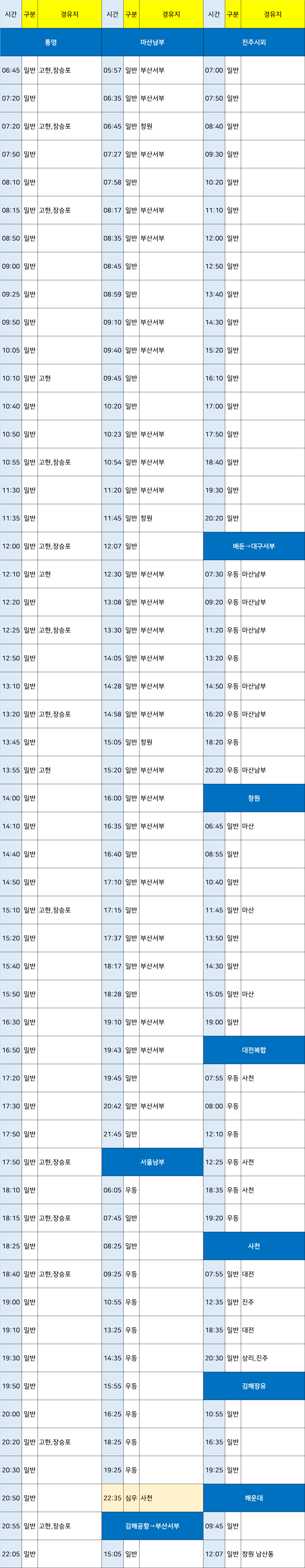 경남 고성 시외버스 터미널 시간표 2025년 01월 18일 기준
