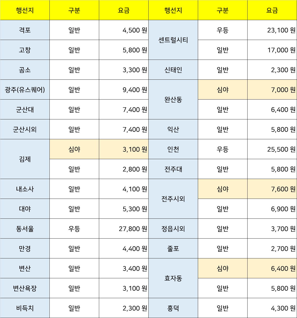 부안 시외버스 터미널 시간표 2025년 01월 24일 기준
