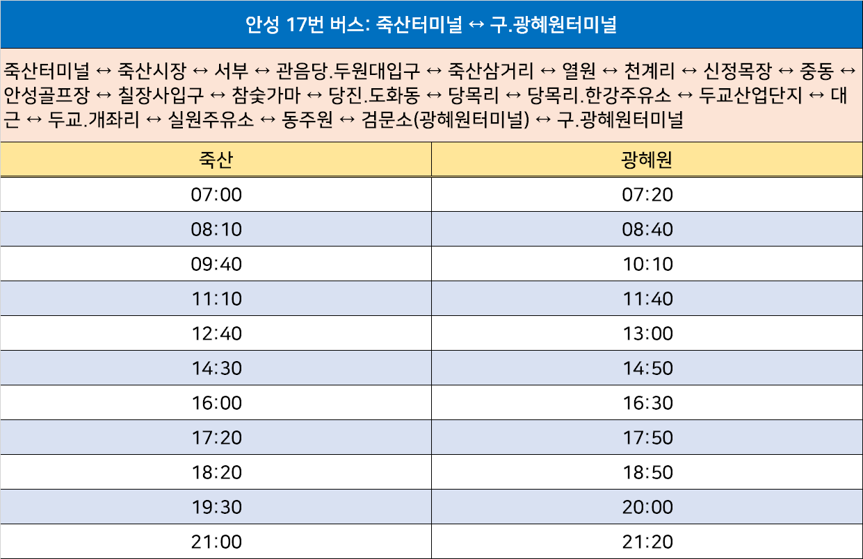 안성 17번 버스: 죽산터미널 ↔ 구.광혜원터미널