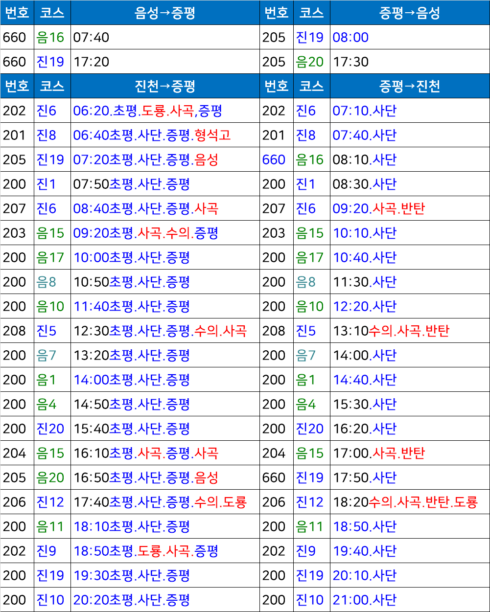 증평역 출발 농어촌 버스 시간표