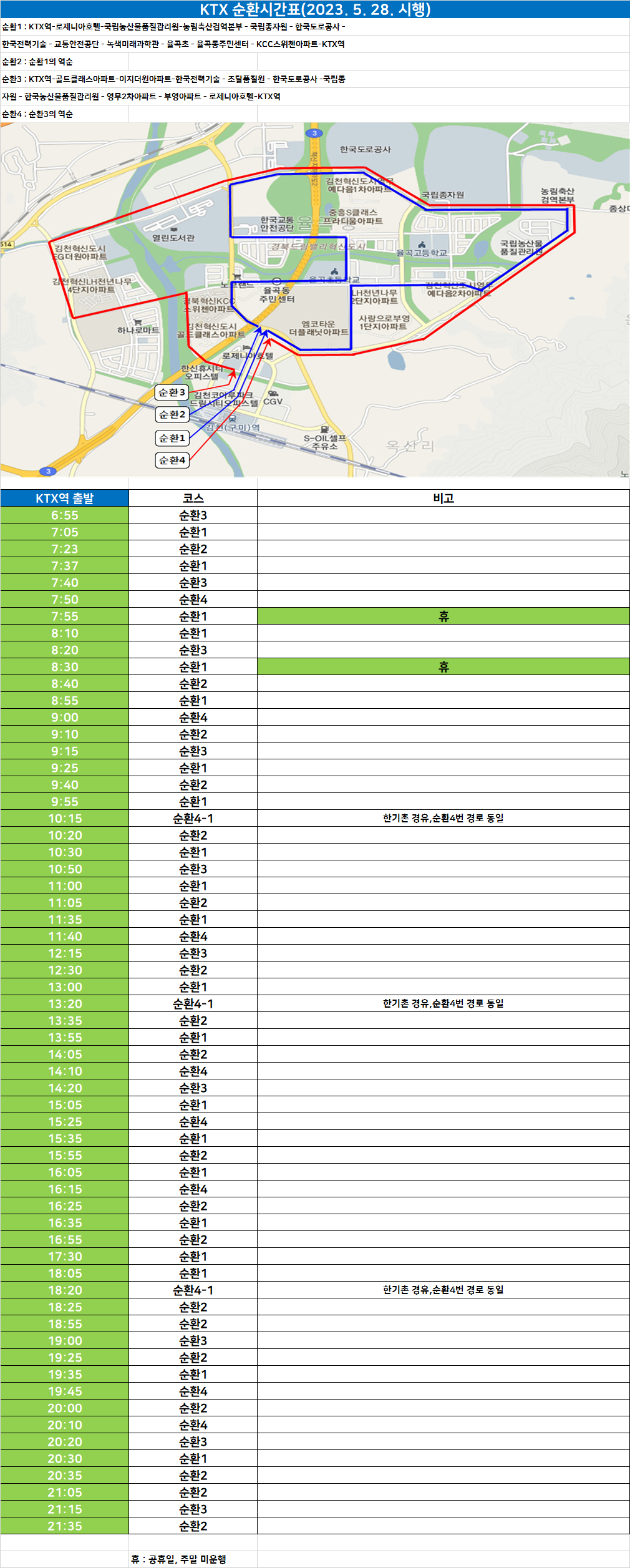 KTX 원도심 순환 버스 시간표
